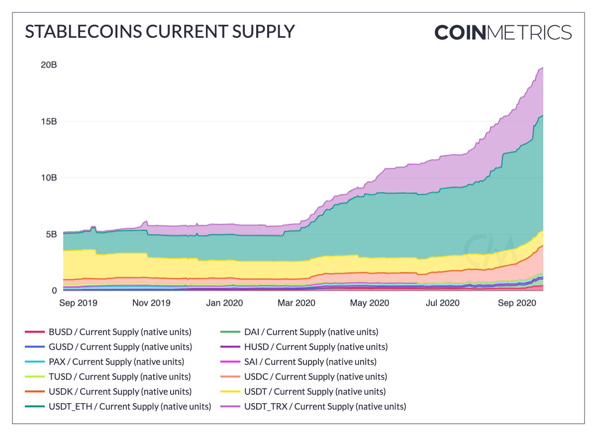 Tổng giá trị của stablecoin hiện đã vượt qua 20 tỷ đô la, phản ánh nhu cầu ngày càng tăng của các nhà đầu tư tìm cách phòng ngừa rủi ro của họ trong cả thị trường tiền điện tử và thị trường truyền thống trong bối cảnh đại dịch Covid-19.