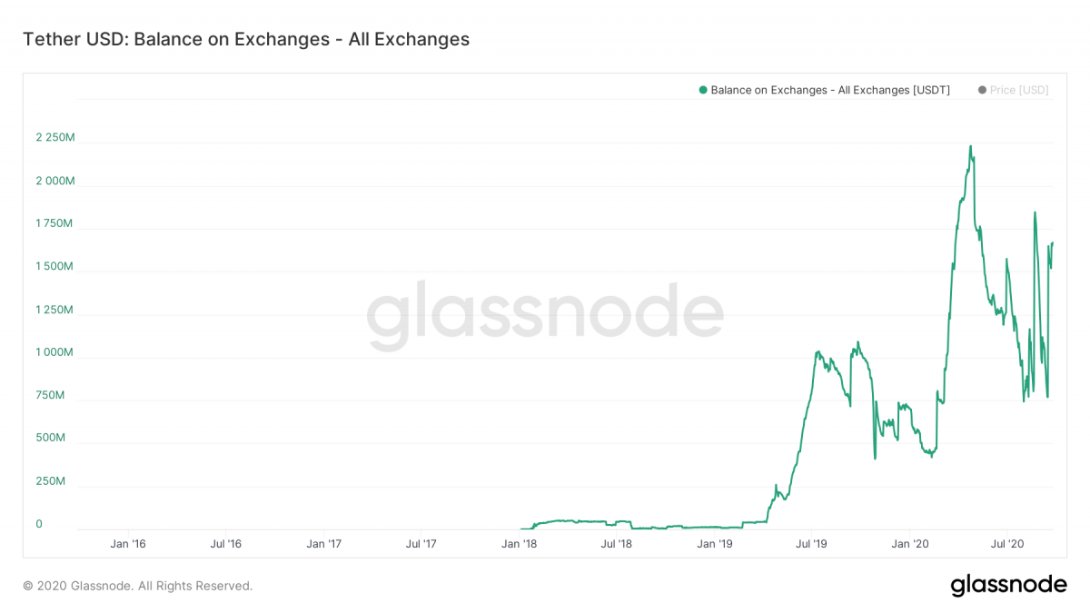 Nguồn cung stablecoin tăng lên cũng khiến tính thanh khoản cao hơn trong giao dịch vào tuần trước, theo báo cáo hàng tuần của Glassnode công bố ngày 21 tháng 9.