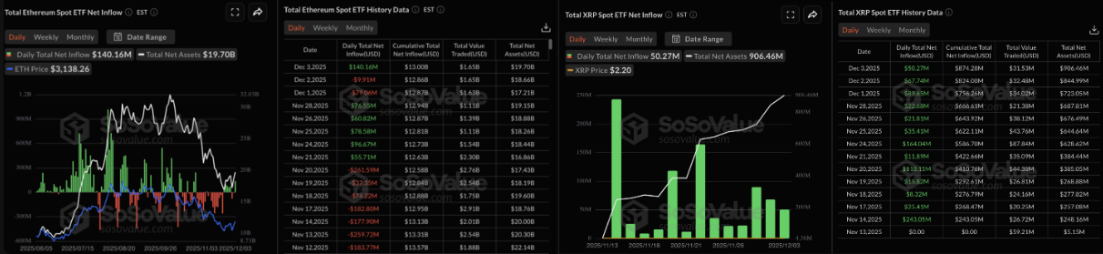 Các quỹ ETF giao ngay của Ethereum và Ripple lần lượt hút ròng 140,16 triệu USD và 50,72 triệu USD trong phiên giao dịch ngày thứ Tư, phản ánh làn sóng dịch chuyển ngày càng rõ nét của các định chế tài chính truyền thống theo hướng ủng hộ thị trường tiền điện tử trong tuần này.