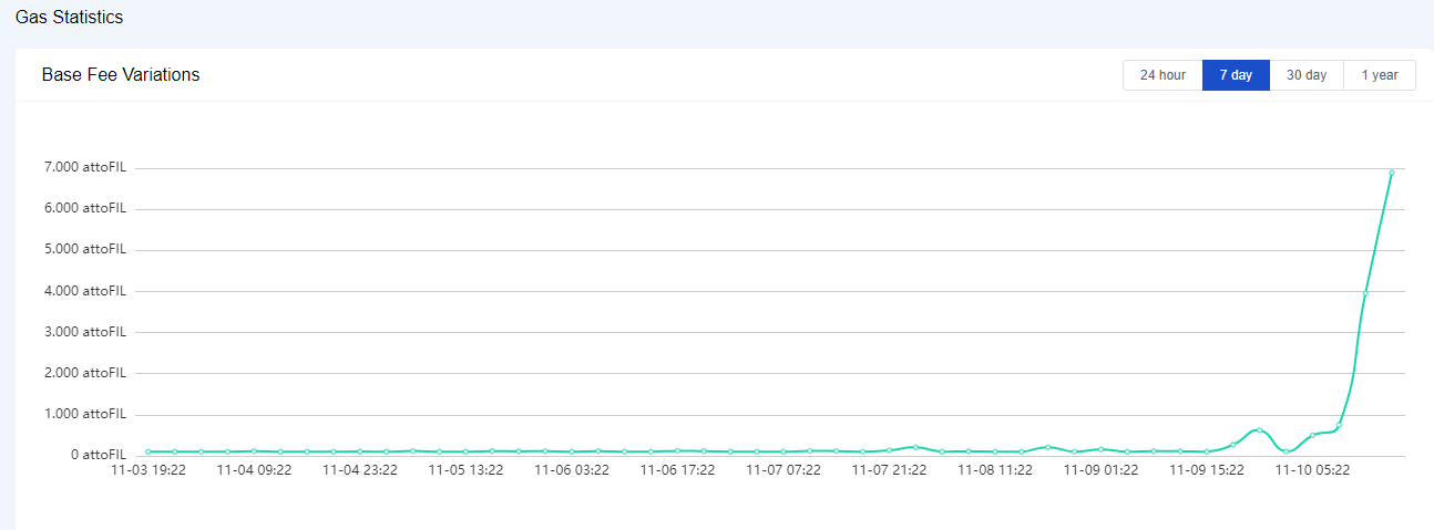 Kể từ khi các thợ đào ngừng hoạt động vào khoảng ngày 19 tháng 10, tổng dung lượng lưu trữ trên mạng của Filecoin đã tăng 250 PiB trong 22 ngày qua với mức tăng trưởng trung bình hàng ngày khoảng 11 PiB.