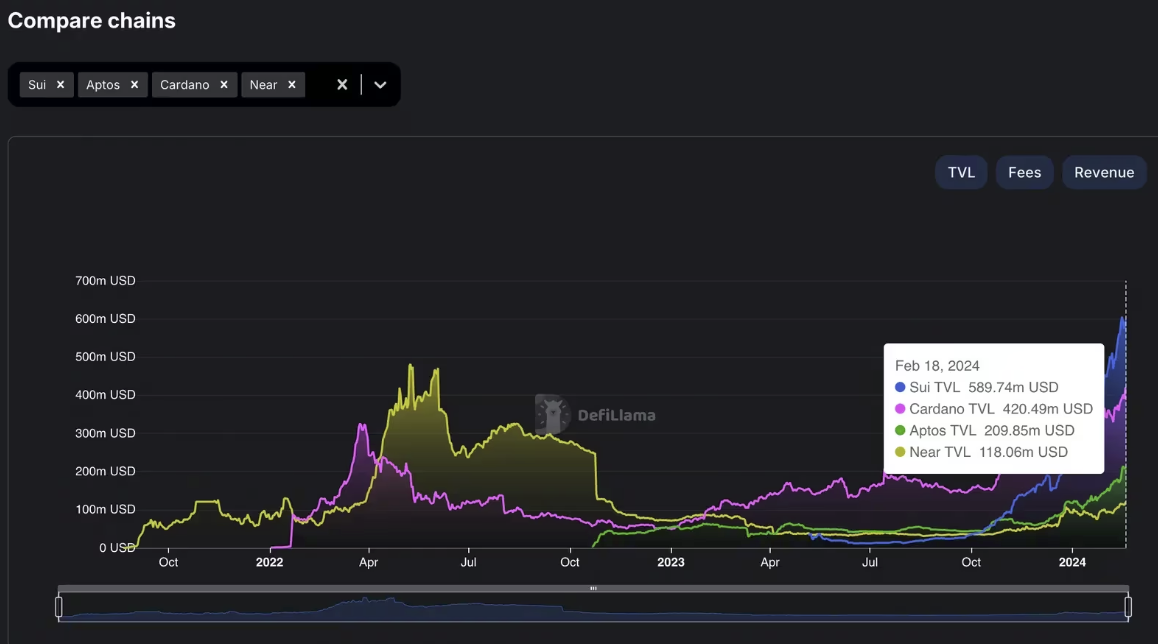 Mạng được xây dựng bởi các cựu nhân viên Meta (META), hiện có hơn 593 triệu đô la vốn bị khóa trên các giao thức tài chính phi tập trung (DeFi) khác nhau, cao hơn gấp đôi tổng số vốn của nó vào thời điểm đầu năm khi nó có 211 triệu đô la, dữ liệu của DefiLlama cho biết.