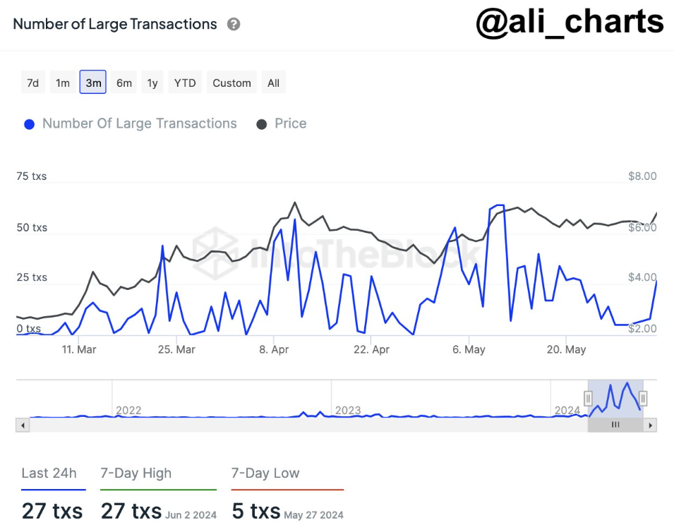 Số lượng giao dịch Toncoin lớn | Nguồn: Ali Charts