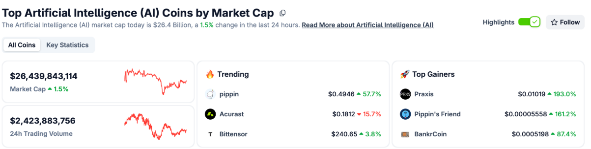 Token AI | Nguồn: CoinGecko