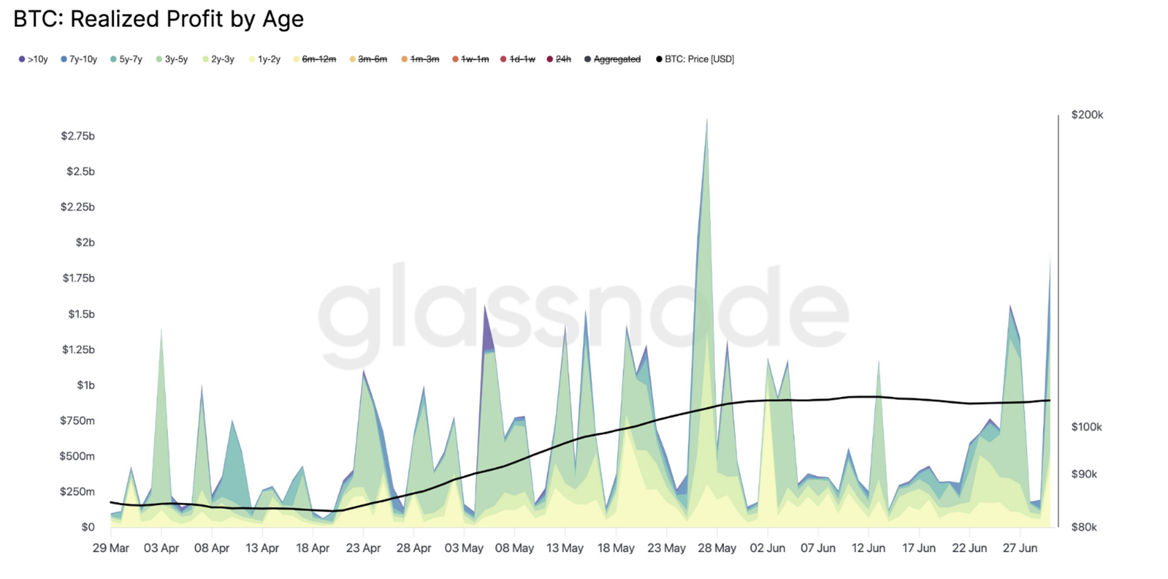 Dữ liệu từ Glassnode cho thấy việc giá Bitcoin dao động trong vùng từ 100.000 đến 110.000 đô la là kết quả của hoạt động chốt lời.