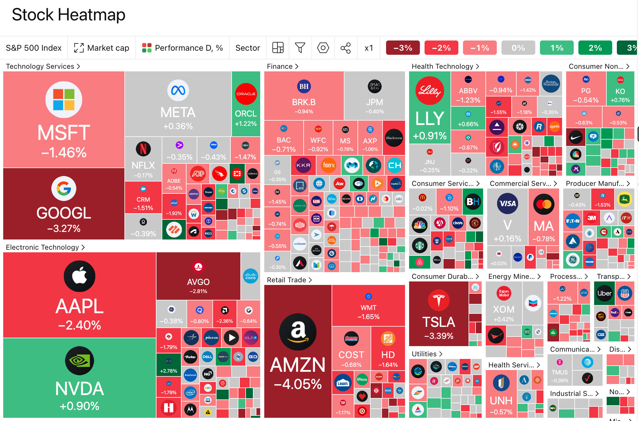 Chỉ số Dow Jones lao dốc 444,23 điểm, khép lại phiên giao dịch ngày thứ Sáu ở mức 44.303,40 điểm. Chỉ số S&P 500 giảm 0,95% xuống còn 6.025,99 điểm, trong khi Nasdaq mất 1,36%, đóng cửa ở 19.523,40 điểm. Tất cả các chỉ số lớn đều ghi nhận tuần giao dịch tồi tệ.