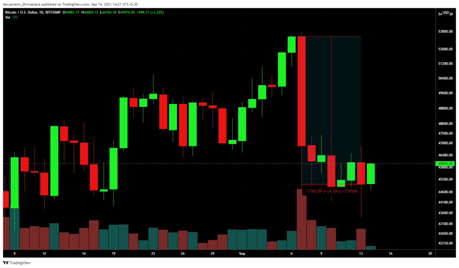 Bitcoin giảm 14,69% | Nguồn: TradingView