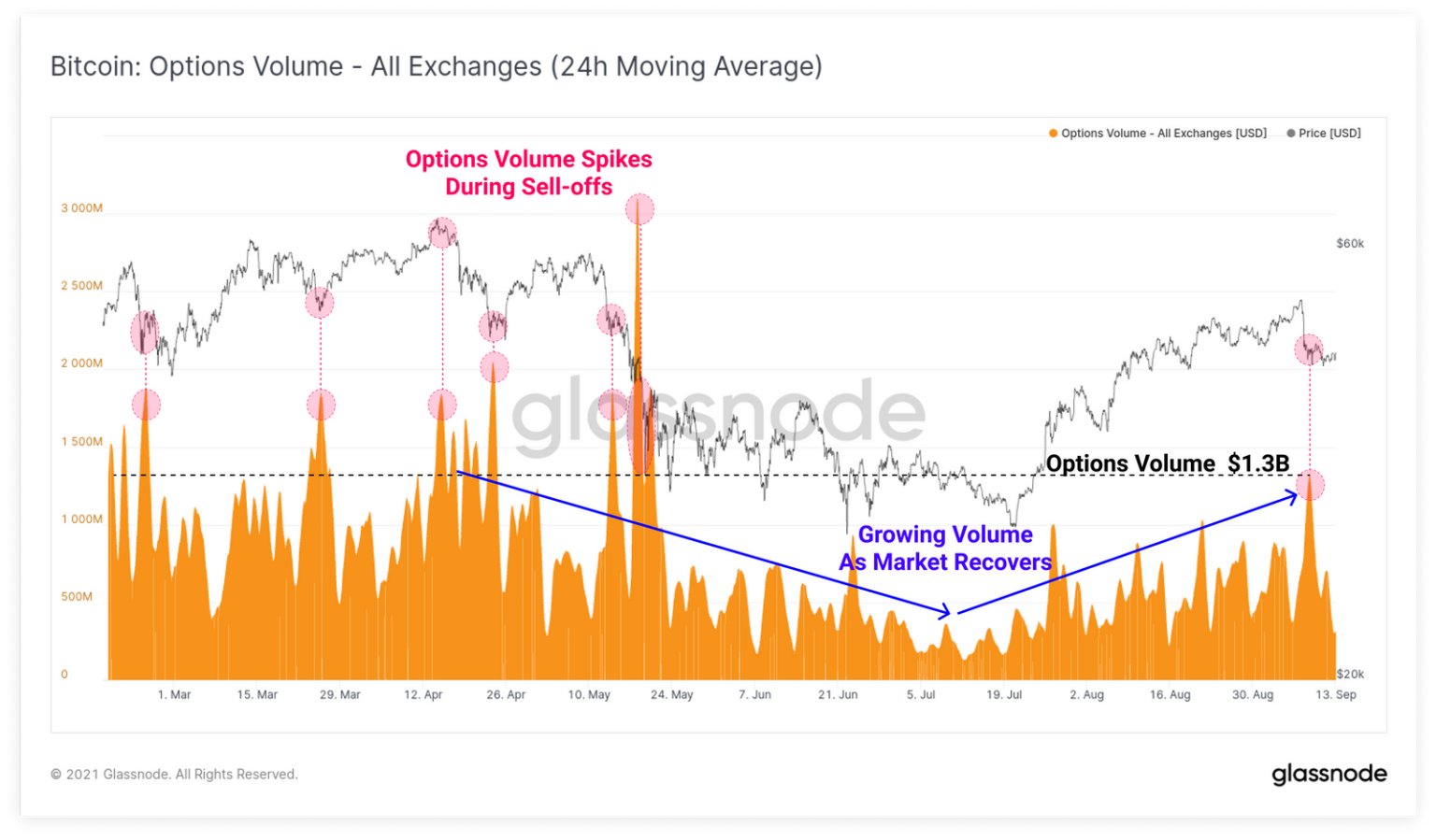 Khối lượng hợp đồng quyền chọn Bitcoin | Nguồn: Glassnode