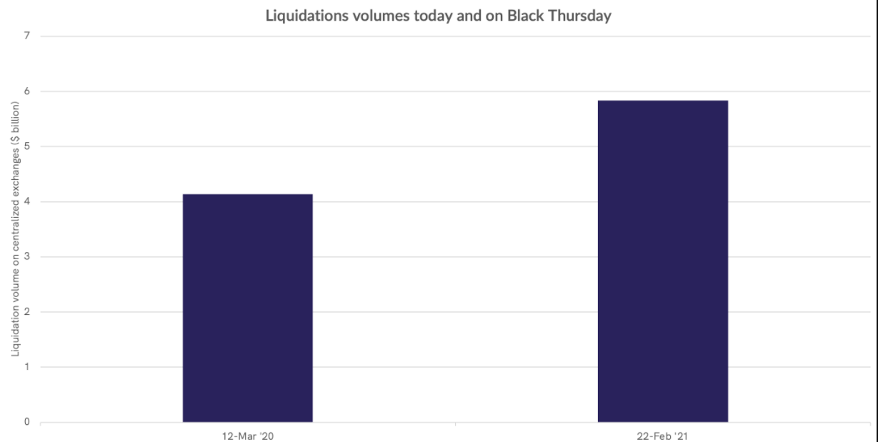 Trong sự kiện Thứ Năm Đen, giá bitcoin đã giảm khoảng 50% và dẫn đến việc thanh lý đáng kể vào thời điểm đó. So với tỷ lệ phần trăm đó, mức giảm mới nhất của bitcoin tương đối thấp hơn khoảng 17%, mặc dù thanh khoản cao hơn.
