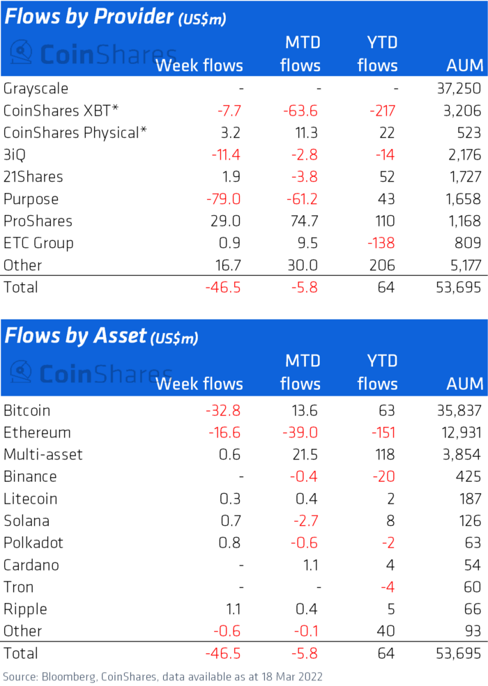 Dòng vào trong tuần kết thúc vào ngày 18/3 | Nguồn: CoinShares