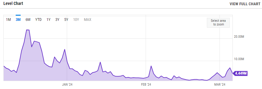 Theo dữ liệu từ YCharts, phí giao dịch đã tăng đáng kể trong đợt tăng giá mới nhất, nhưng giá trị không quá cao.