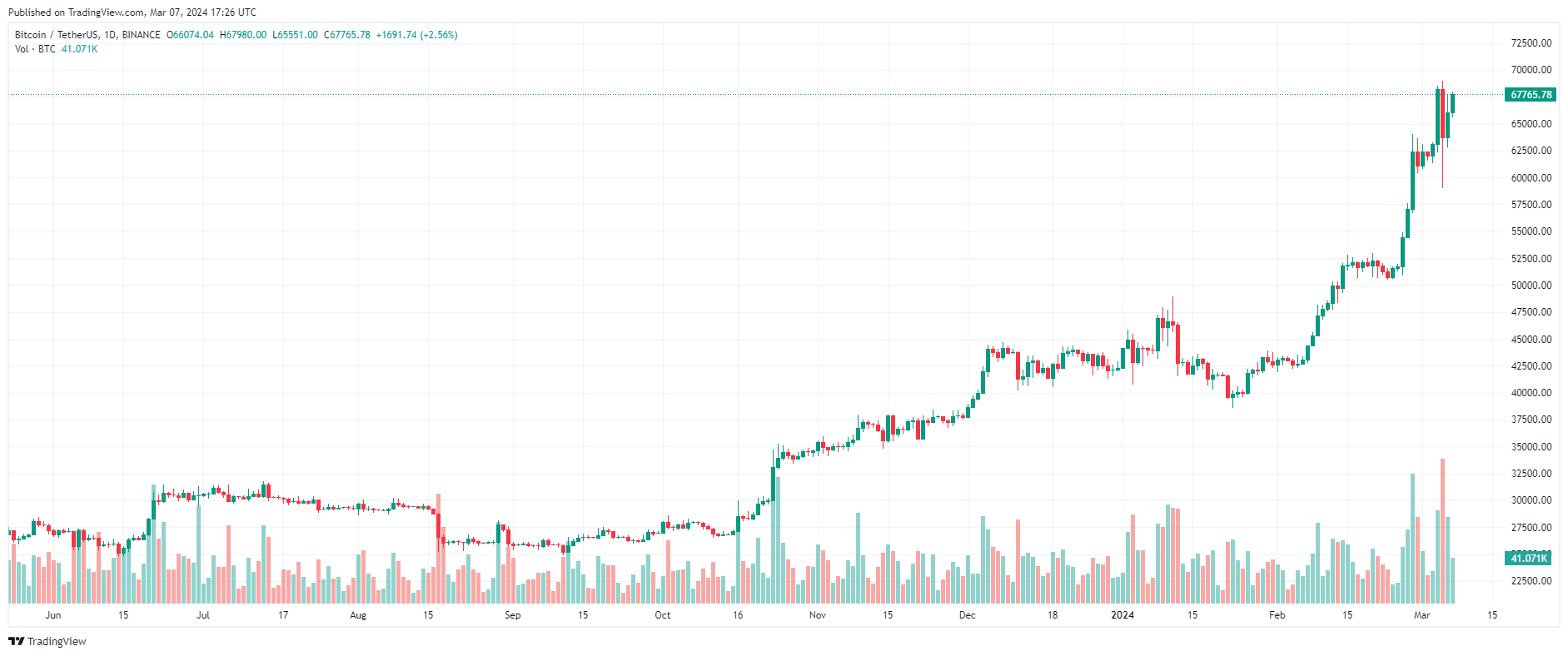 Tại thời điểm hiện tại, Bitcoin đang được giao dịch quanh $ 67.800, tăng 8% trong tuần qua.