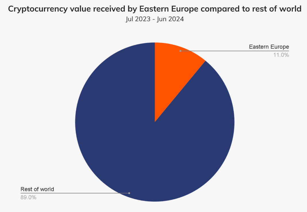 Với giá trị này, Đông Âu hiện là thị trường tiền điện tử lớn thứ tư toàn cầu, đóng góp hơn 11% vào tổng lượng crypto nhận được trên thế giới.