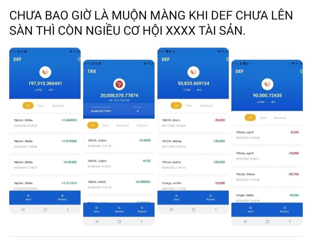 Thứ ba, đội ngũ chỉ đang cố gắng lừa bán token DEF, hứa hẹn tăng lợi nhuận đáng kể nhằm chiếm đoạt tài sản người dùng. Hơn nữa, dự án còn cam kết sẽ trả thưởng, trả hoa hồng, quá giống với mô hình đa cấp trá hình. Đặc biệt, có một đặc điểm cực kỳ giống với những mô hình đã sụp đổ trước đây là những lời hứa hẹn đầu tư và tặng nhiều món quà đắt tiền. Ban có thể tham khảo qua hình ảnh bên dưới.