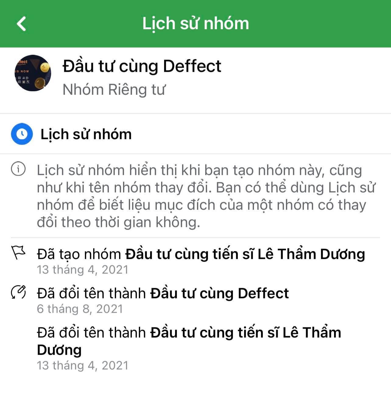 Nhưng vào ngày 6/8 lại bất ngờ đổi tên thành “Đầu tư cùng Deffect”.