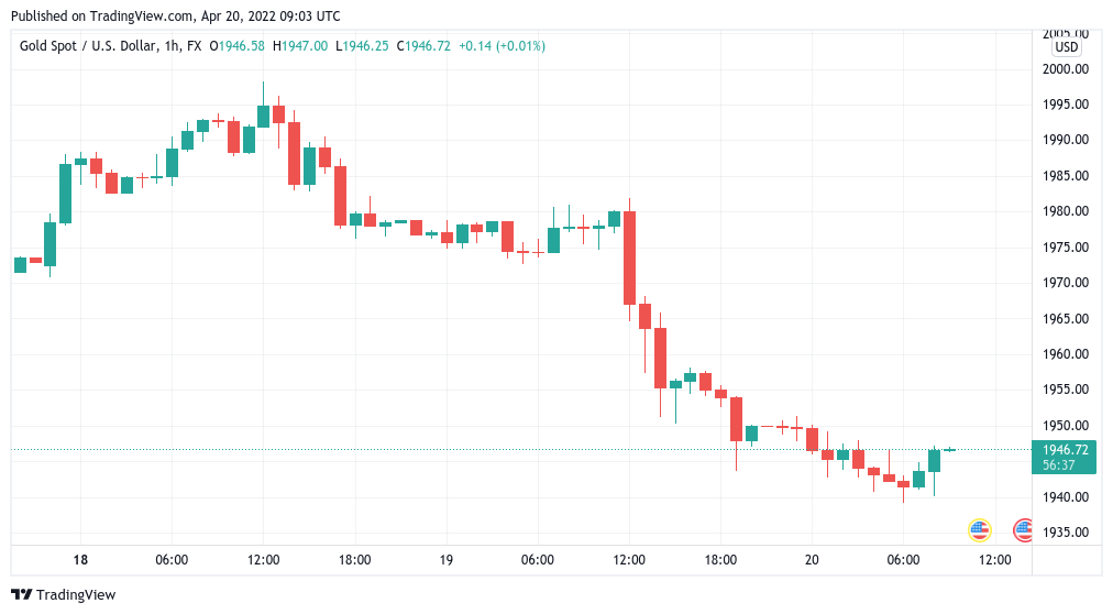 Biểu đồ nến XAU/USD 1 giờ | Nguồn: TradingView