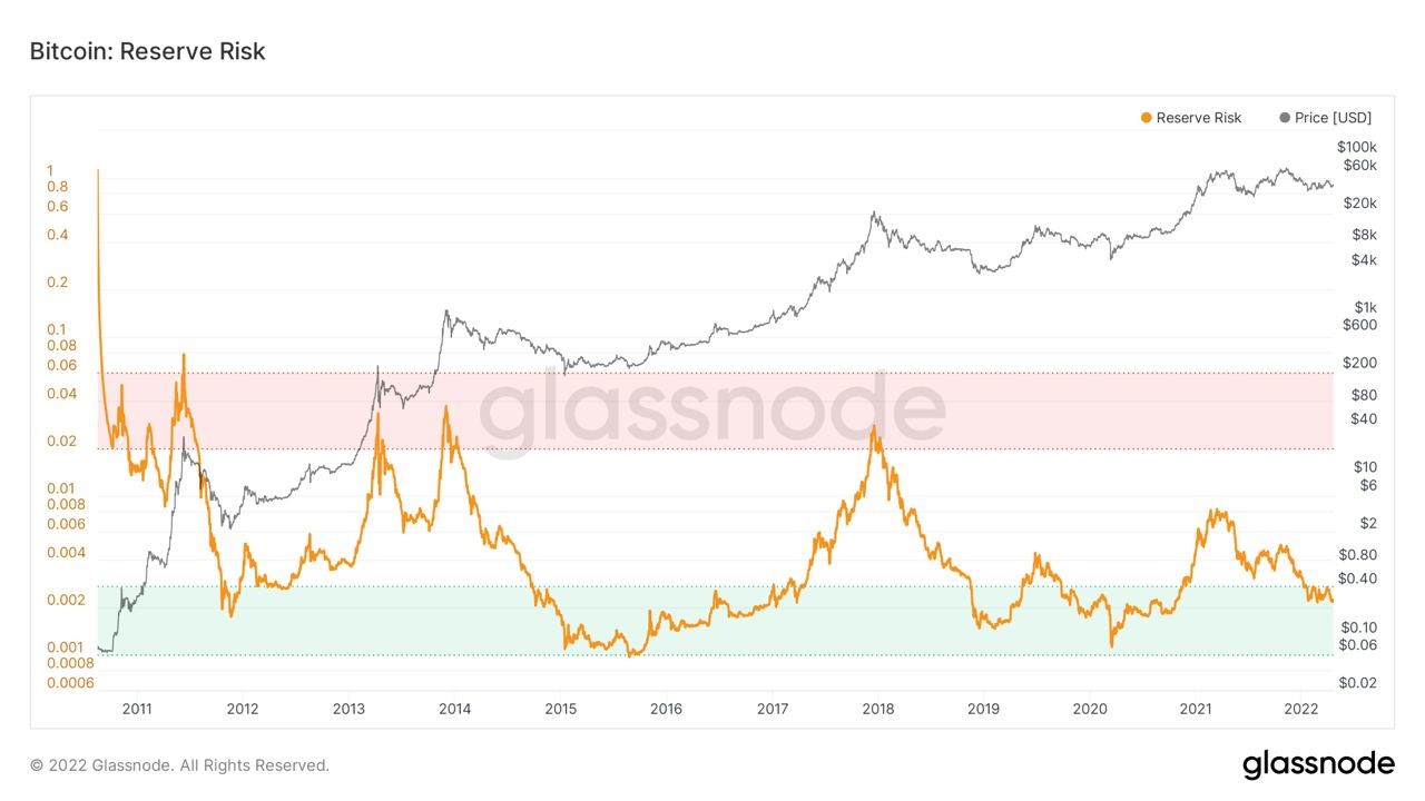 Trong số đó có biểu đồ Rủi ro Dự trữ của Bitcoin, hiện nằm vững chắc trong vùng khởi động từng đánh dấu sự khởi đầu của các giai đoạn tăng giá.