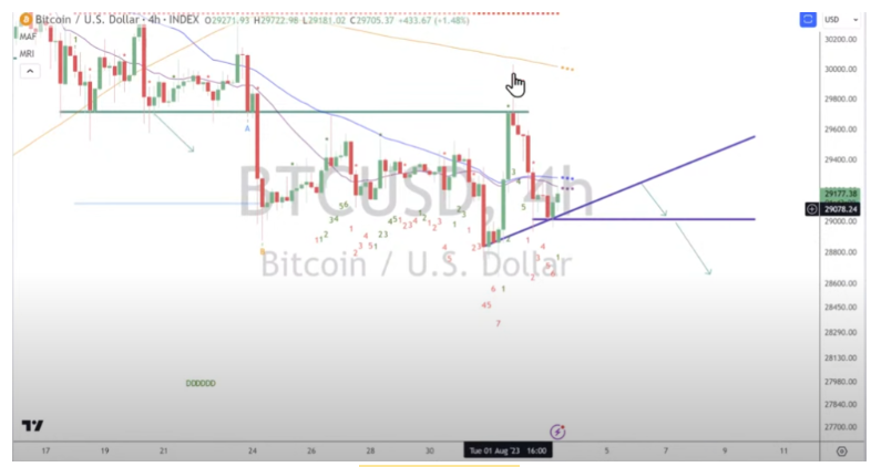 “$ 28.500 là khu vực quan trọng. Dưới mức đáy này, mọi thứ có thể trở nên tồi tệ. Nếu BTC giảm xuống dưới đường xu hướng (đường chéo), thì thị trường sẽ tiến gần đến mức đáy đảo chiều quanh $ 28.500. Và nếu mức này bị phá vỡ trong thời gian tới, BTC sẽ phải chứng kiến đợt điều chỉnh mạnh mẽ”.
