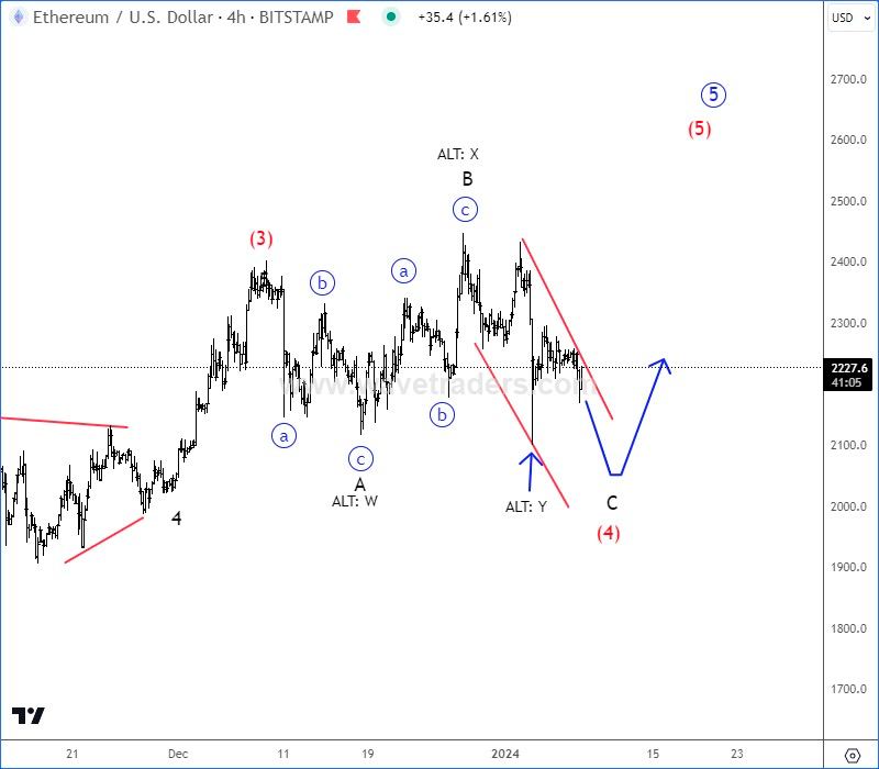 Trong trường hợp nếu ETH tìm thấy mức hỗ trợ tại khu vực $ 2.100 thì đó cũng có thể là do đợt điều chỉnh W-X-Y phức tạp đã hoàn thành.