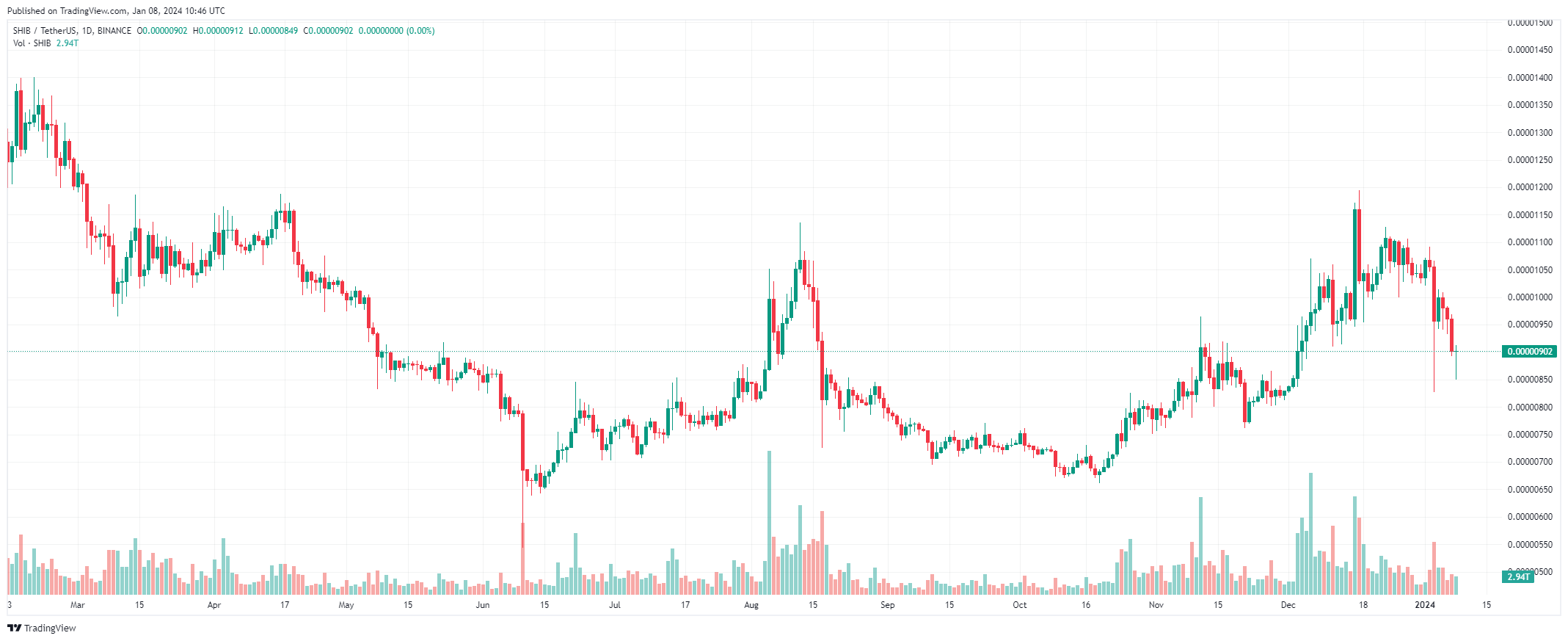 Theo dữ liệu từ TradingView, memecoin này đã giảm hơn 5% trong 24 giờ qua xuống còn $ 0,000009038.