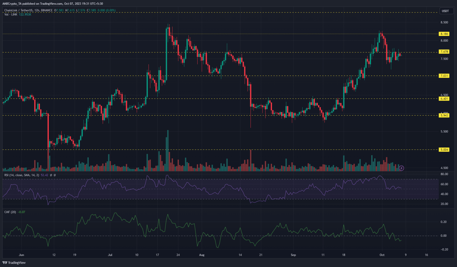 Mức giá cao nhất là $ 8,1 một lần nữa cản trở phe bò, khi Chainlink (LINK) hình thành đợt thoái lui đưa altcoin xuống dưới mức hỗ trợ $ 7,6.