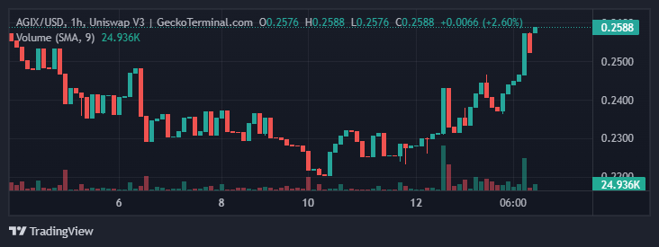 Theo dữ liệu từ CoinMarketCap, AGIX đang được giao dịch quanh $ 0,258, tăng hơn 13% trong 24 giờ qua.