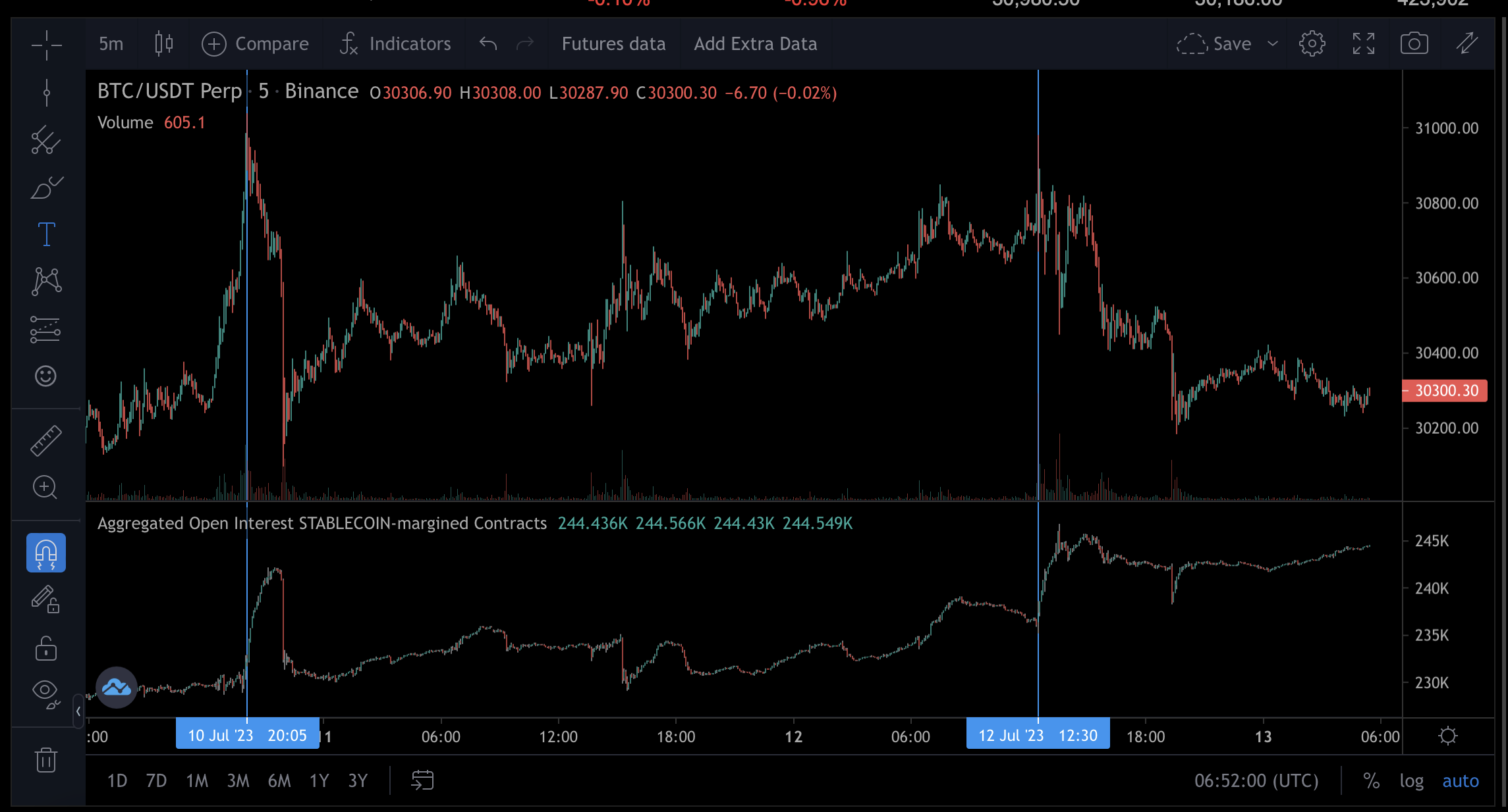 Nỗ lực thất bại đầu tiên diễn ra vào ngày thứ Hai, khi chứng kiến giá đạt mức cao nhất là $ 31.040 trước khi nhanh chóng quay trở lại quanh $ 30.200 sau đó. Hợp đồng mở hoặc số lượng hợp đồng tương lai được ký quỹ bằng stablecoin đang hoạt động gắn liền với Bitcoin, đã tăng từ khoảng 230.000 BTC lên 242.000 BTC khi giá giảm từ ngưỡng $ 31.040.