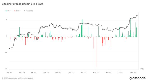 Dòng vốn của Purpose Bitcoin ETF | Nguồn: Glassnode