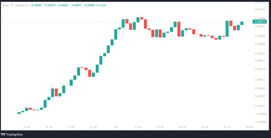 NIKE, lấy cảm hứng từ con lợn của Hoskinson, nhanh chóng trở nên phổ biến. Nó hiện có vốn hóa thị trường là 1,72 triệu ADA, tương đương khoảng $ 650.000. Ngoài ra, khối lượng giao dịch của nó đạt 1,51 triệu ADA, trở thành token được giao dịch nhiều thứ ba trong hệ sinh thái Cardano trong ngày.