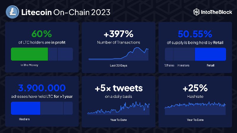 Theo dữ liệu từ IntoTheBlock, Litecoin đã chứng kiến sự tăng trưởng ấn tượng trong năm nay.
