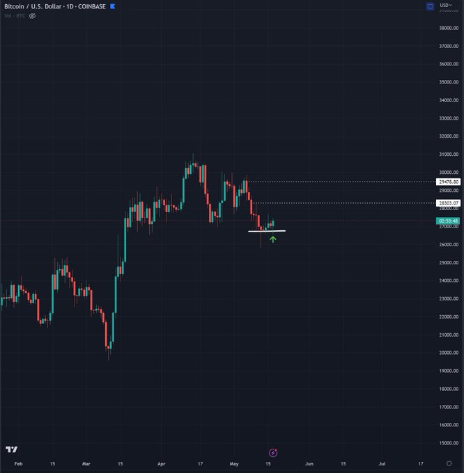 “Mô hình SFPS đã hình thành trên biểu đồ hàng ngày của BTC và hiện tại không phải là thời gian tốt để tham gia short. Nhà đầu tư cần theo dõi sát sao các mức kháng cự tiếp theo quanh $ 28.300 và $ 29.500”.