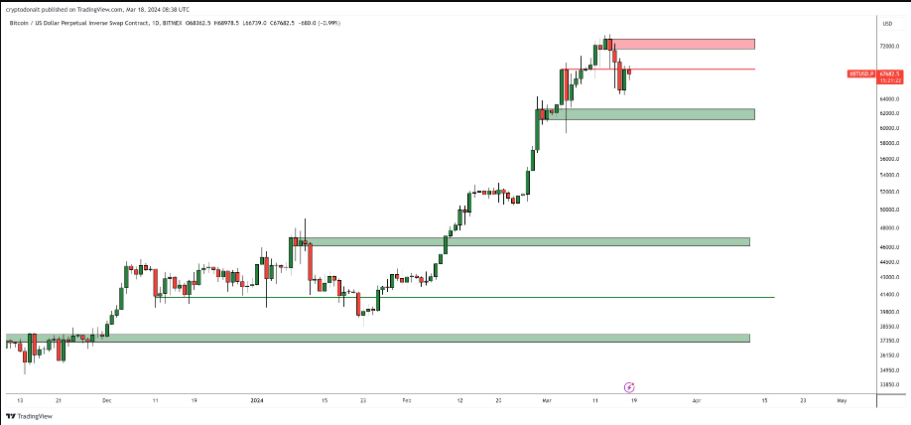 Nhìn vào biểu đồ của trader, mức hỗ trợ gần nhất cho Bitcoin là $ 62.000.