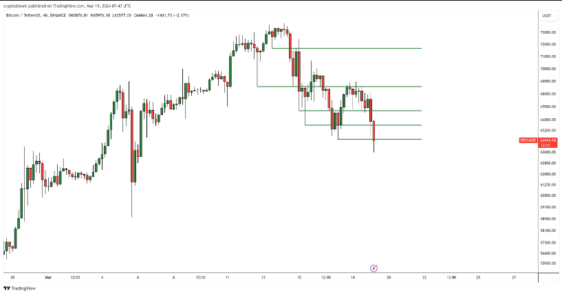 Tại thời điểm hiện tại, BTC đang giao dịch quanh $ 63.750, giảm hơn 12% trong tuần qua.
