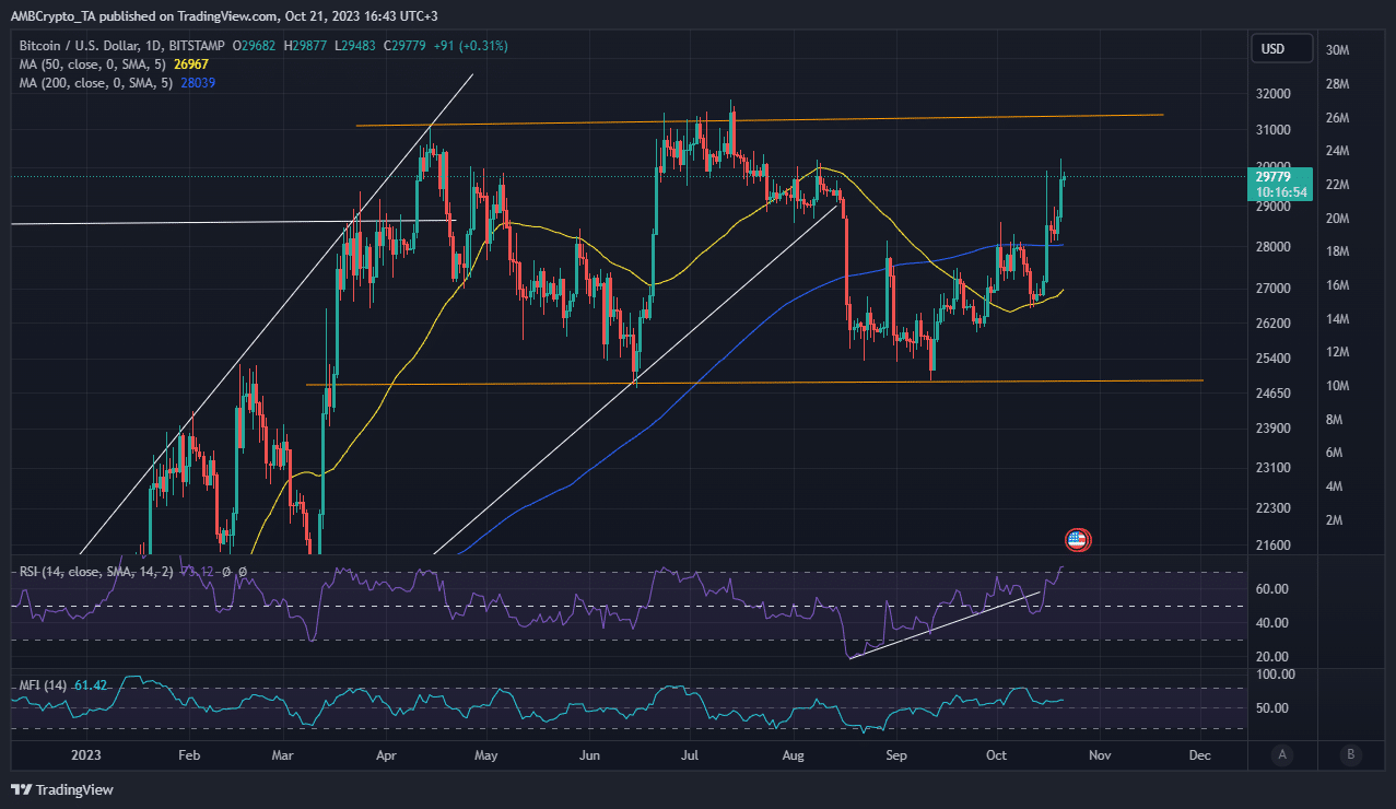 - Giá Bitcoin (BTC) bị từ chối bởi vùng kháng cự tâm lý $30.000, đà tăng đã kết thúc?