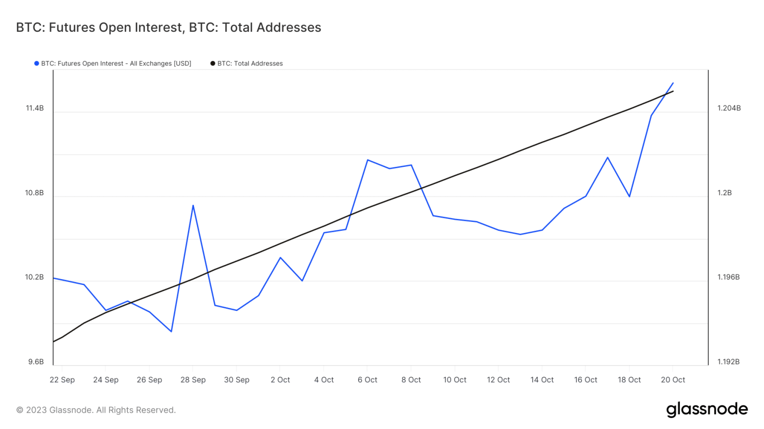 Ngoài nhu cầu gần đây, gồm số lượng hợp đồng mở trên thị trường tương lai Bitcoin cũng tăng vọt lên mức cao nhất trong 2 tháng qua.