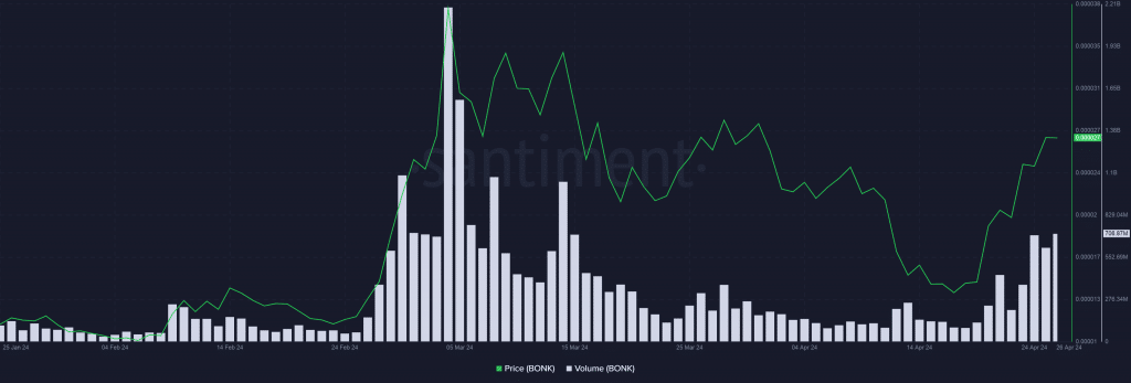 Bonk tiếp tục thách thức sự thoái lui của thị trường rộng lớn hơn. Hơn nữa, đây là tài sản hoạt động tốt nhất trong tuần qua, ghi nhận mức tăng hơn 83%.