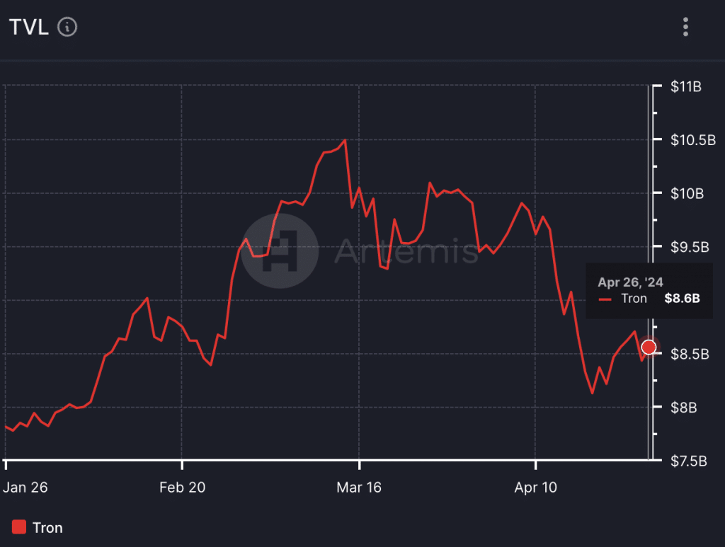 Mặc dù TRON đã ghi nhận được sự gia tăng trong Q1, nhưng điều tương tự lại không xảy ra với Q2. Ví dụ, trong vài tuần qua, TVL cho TRON giảm đáng kể dưới mốc 9 tỷ đô la.
