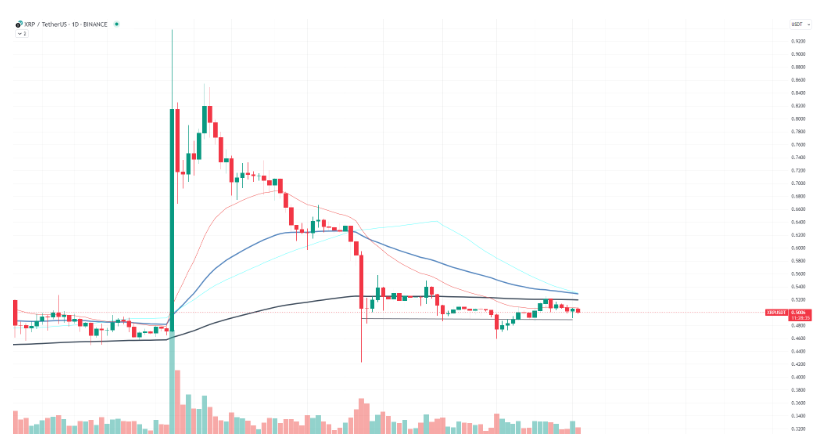 Bối cảnh XRP gần đây không có gì sôi động. Giá của tài sản đang dao động theo xu hướng đi ngang, khác xa với tâm lý lạc quan mà nhiều nhà đầu tư đang hy vọng. Hiện được giao dịch quanh $ 0,5, XRP đã chứng kiến giá trị của nó bị giảm dần từ mức đỉnh cục bộ $ 0,52.