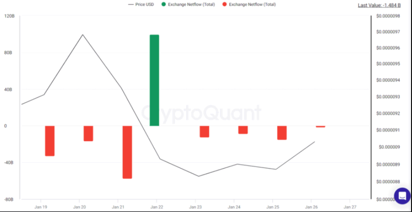 Theo CryptoQuant, dòng tiền ròng trên sàn giao dịch SHIB chỉ ở mức dương một lần trong 8 ngày qua. Việc nhà đầu tư chuyển SHIB từ sàn giao dịch tập trung sang phương pháp tự lưu ký được coi là tín hiệu tăng giá vì nó làm giảm áp lực bán ngay lập tức.