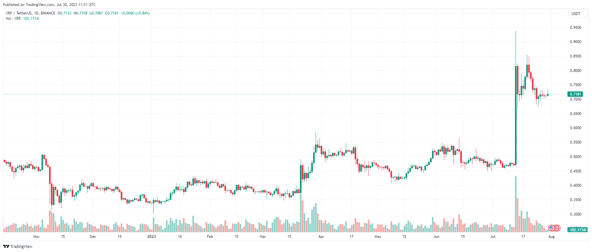 Chỉ vài tuần trước, XRP đã trải qua một đợt tăng giá ấn tượng đến 75%. Chuyển động đi lên này phần lớn được thúc đẩy bởi làn sóng tâm lý tích cực giữa các nhà đầu tư và xu hướng tăng giá của thị trường crypto rộng lớn. Khi giá tăng, sự biến động cũng tăng theo, mang lại nhiều cơ hội cho trader.
