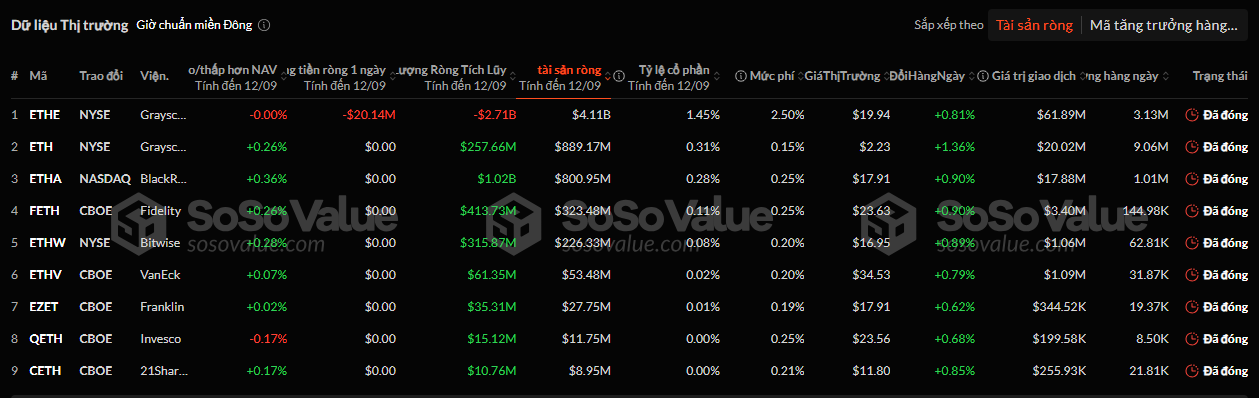 Grayscale ETF ETHE có dòng tiền ròng chảy ra trong một ngày là 20,1396 triệu USD và tổng dòng tiền ròng chảy ra của ETHE tính đến thời điểm hiện tại là 2,714 tỷ USD.