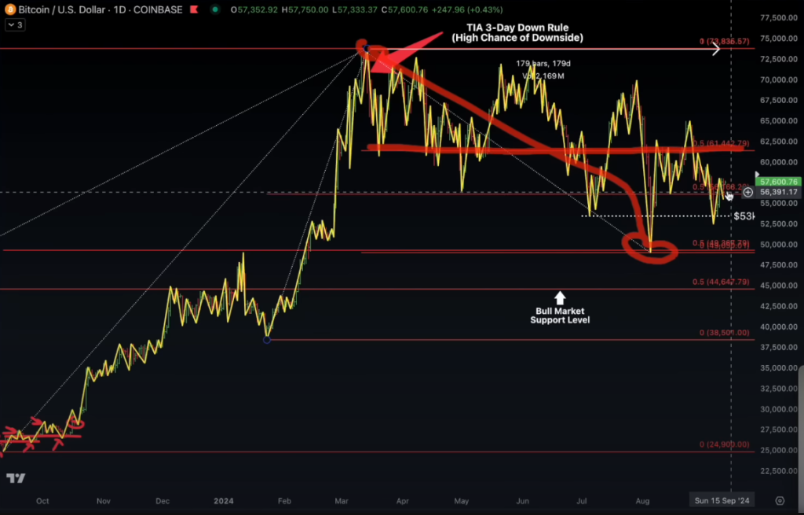 “Với điều kiện chúng ta đóng cửa trên $58.000 trong ngắn hạn, đây có thể là sự phục hồi để kiểm tra mức quan trọng hơn trong khoảng $61.500, tức là mức Fib 50% trong đợt điều chỉnh từ tháng 3 đến tháng 8. Đó là mức quan trọng tiếp theo để Bitcoin kiểm tra, vượt qua và củng cố, từ đó có thể bắt đầu giai đoạn tiếp theo của đợt tăng giá, hướng đến mức đỉnh kỷ lục mới.”