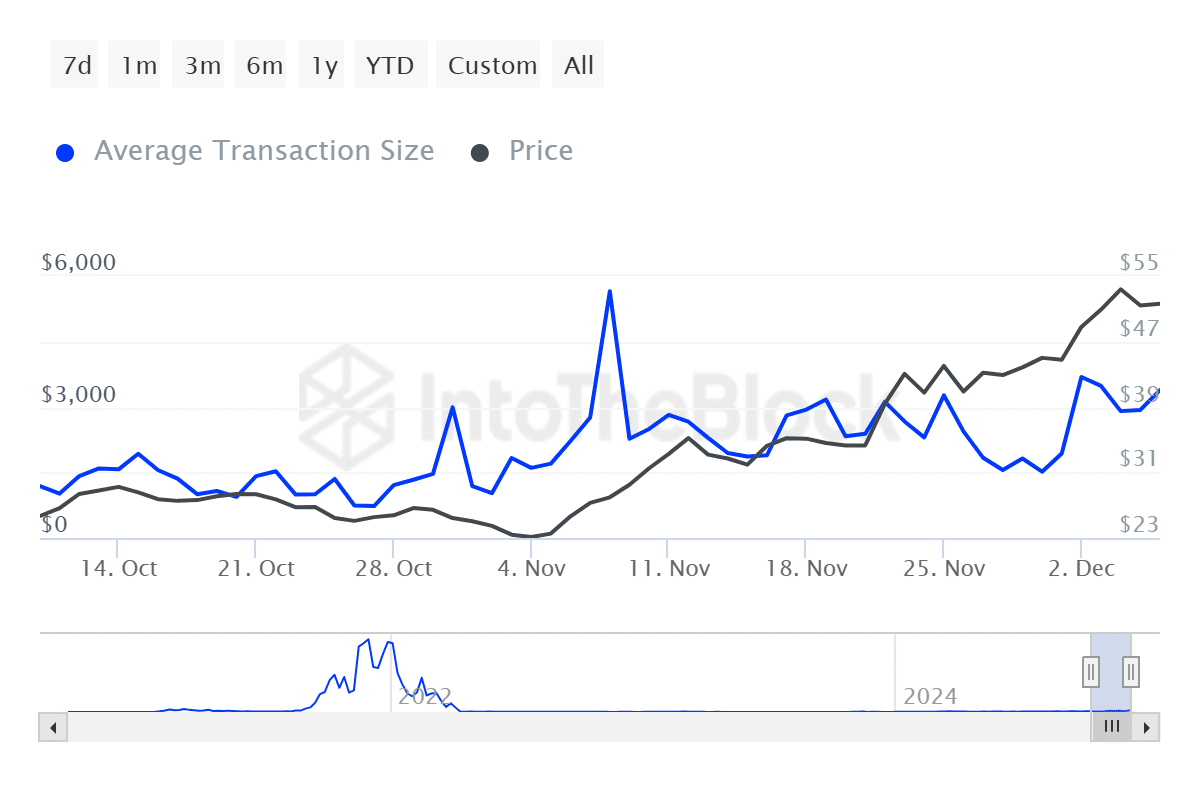 Xu hướng này cho thấy trader đang mua số lượng AVAX lớn hơn cho mỗi giao dịch. Hành vi như vậy chỉ ra khả năng nhu cầu sẽ tăng lên, có thể thúc đẩy giá trị tài sản và dẫn đến giá tăng đột biến.