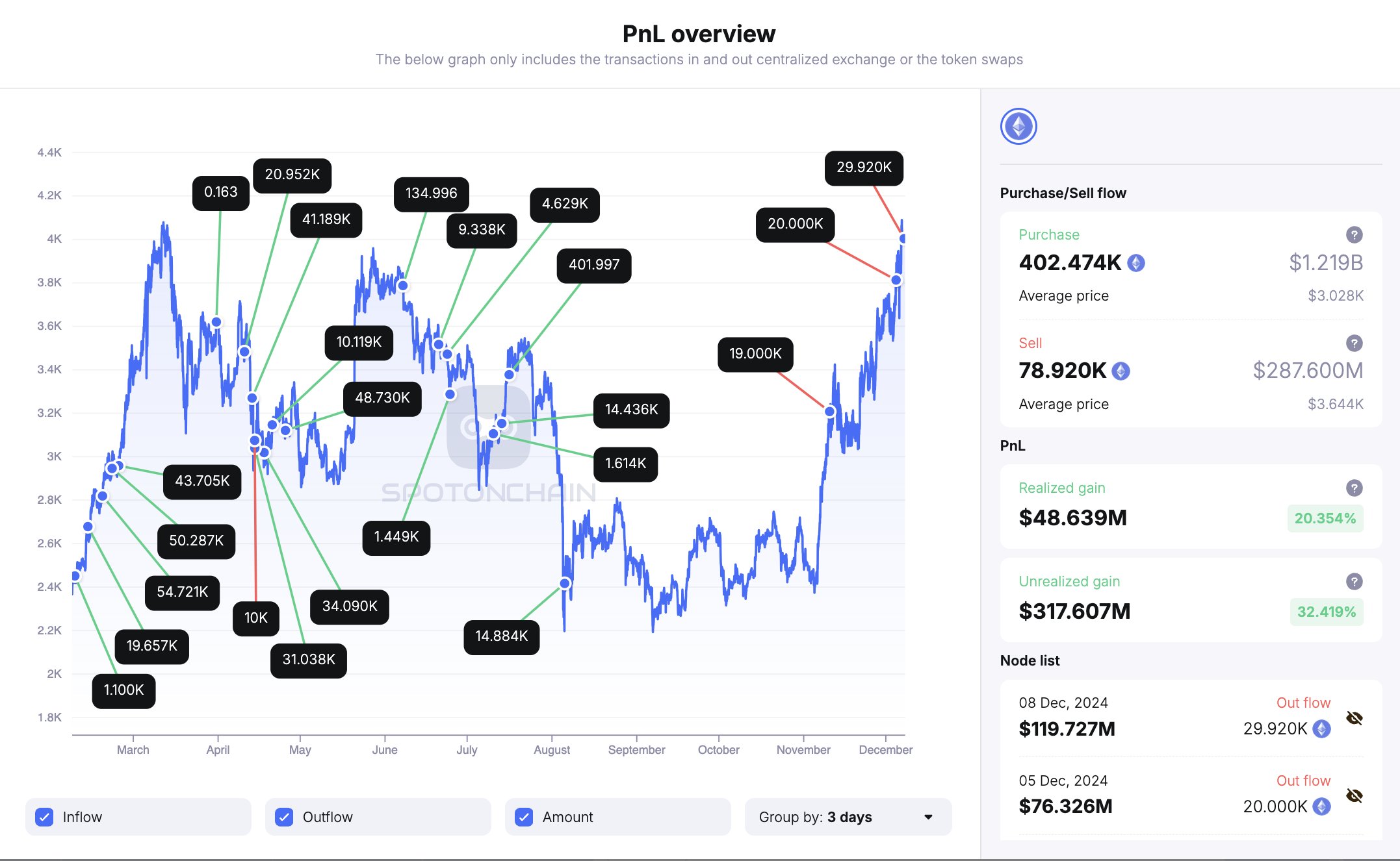 Theo nền tảng phân tích blockchain Spot On Chain, nhóm của Justin Sun đã gửi 29.920 ETH (trị giá 119,7 triệu USD) đến HTX sau khi giá Ethereum vượt mốc $4.000. Đây là một phần trong khoản tích lũy lớn hơn gồm 392.474 ETH mà nhóm đã mua lại từ tháng 2 đến tháng 8 năm 2023, với giá mua trung bình là $3.027 và tổng vốn đầu tư khoảng 1,19 tỷ USD.