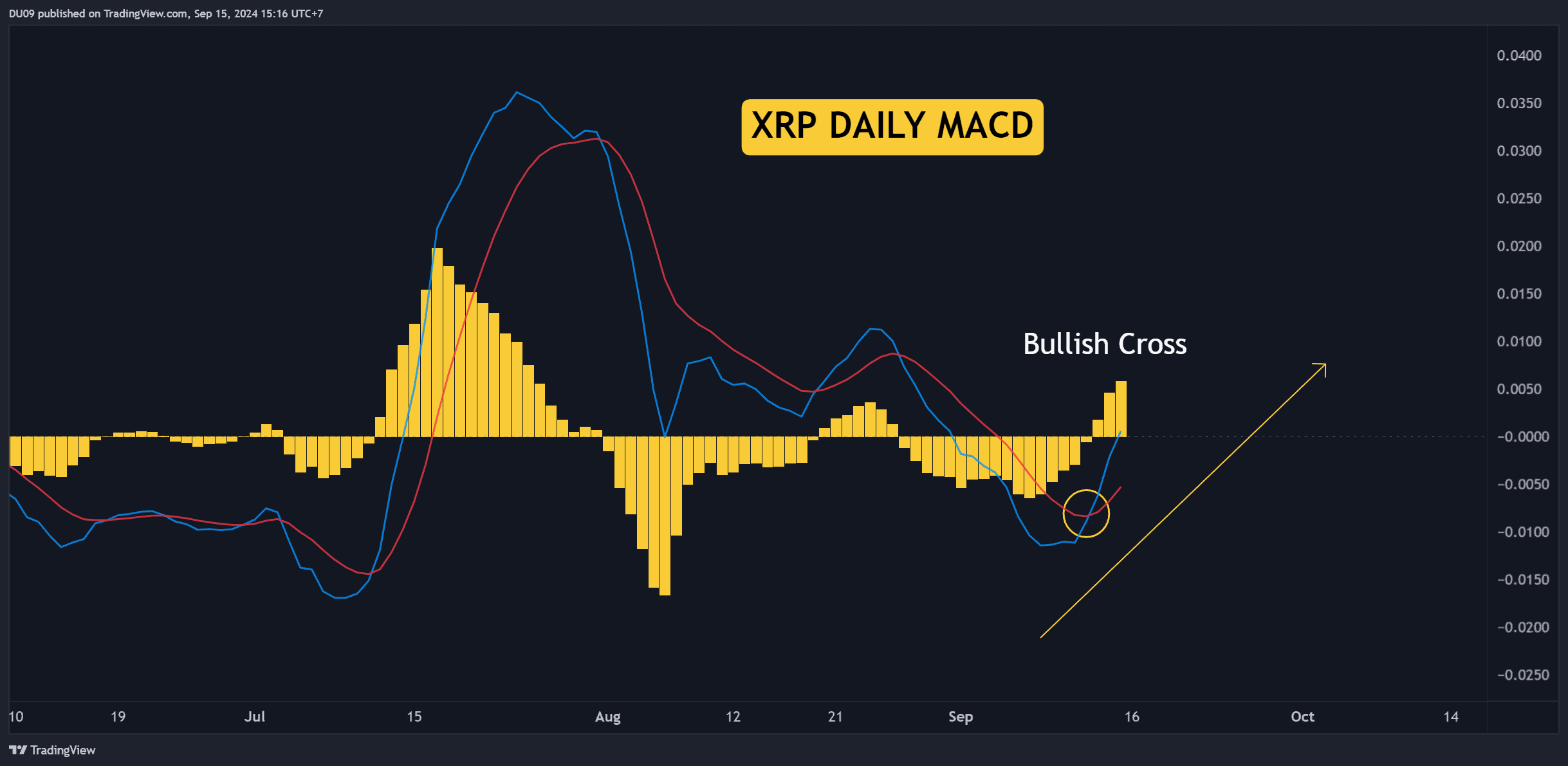 XRP cũng đã tạo ra giao cắt tăng giá vào ngày thứ Sáu, cho thấy người mua đang kiểm soát hành động giá và đợt thoái lui hiện tại có thể chỉ kéo dài trong thời gian ngắn. Nếu thành công vượt ngưỡng $0,6, mức $0,68 sẽ là mục tiêu tiếp theo cho đợt tăng giá.