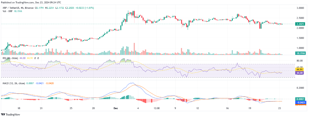 Tại thời điểm hiện tại, XRP đang được giao dịch ở mức $2,2, giảm khoảng 3% trong 24 giờ qua. XRP đã ghi nhận biến động lớn trong tuần qua khi thị trường trải qua những đợt giảm giá mạnh.