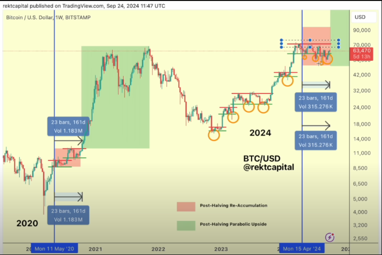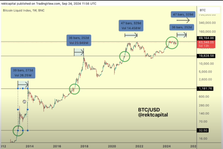 Theo Rekt Capital, giai đoạn parabol của Bitcoin có khả năng đạt đỉnh vào nửa cuối năm 2025 nếu lịch sử lặp lại.