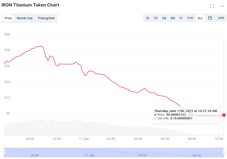 IRON Titanium Token (TITAN), một phần của “hệ sinh thái stablecoin thuật toán được thế chấp một phần đa chuỗi ” từ IRON Finance, đã sụp đổ hoàn toàn.