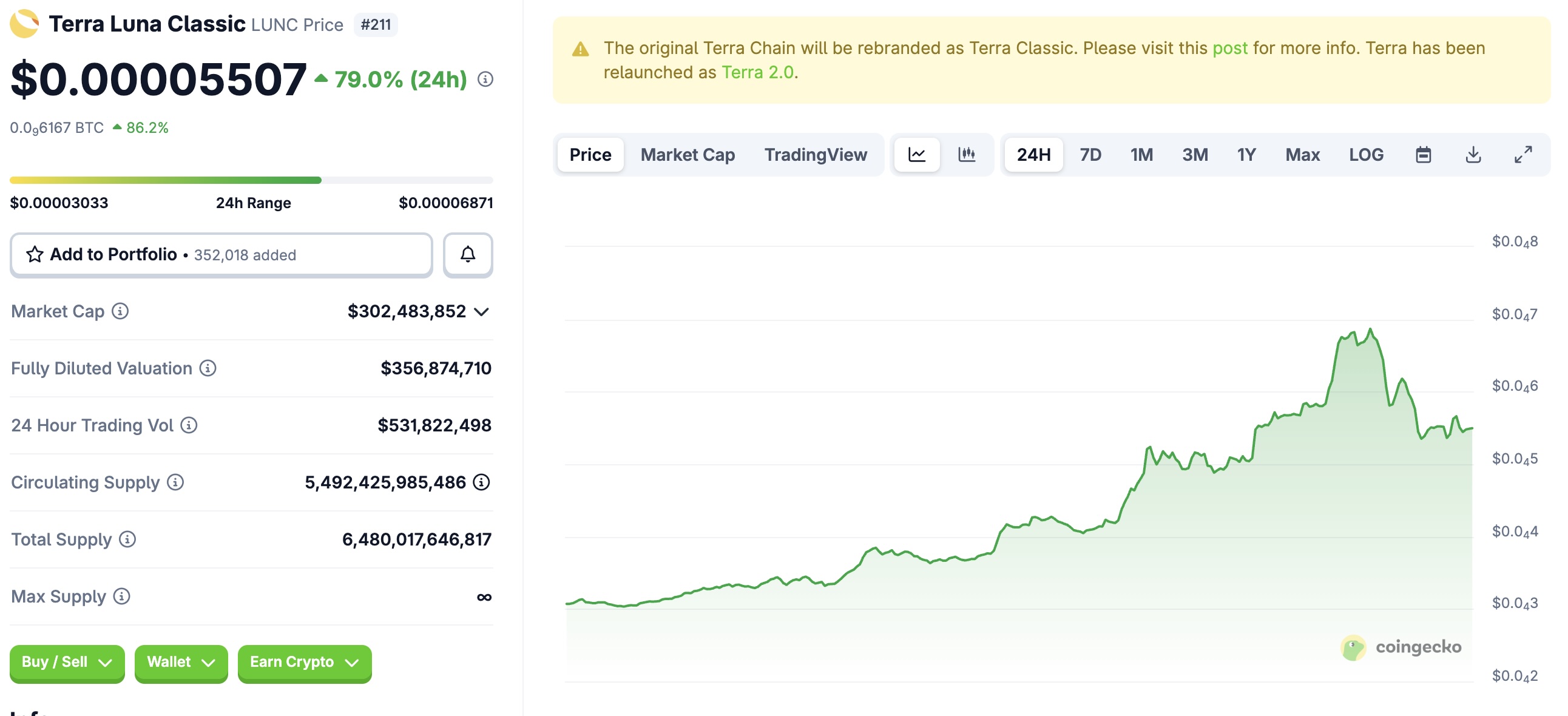 Sau tin tức trên, 2 token Terra (LUNA) và Terra Luna Classic (LUNC) tăng vọt lần lượt 35% và 80% trong ngày.