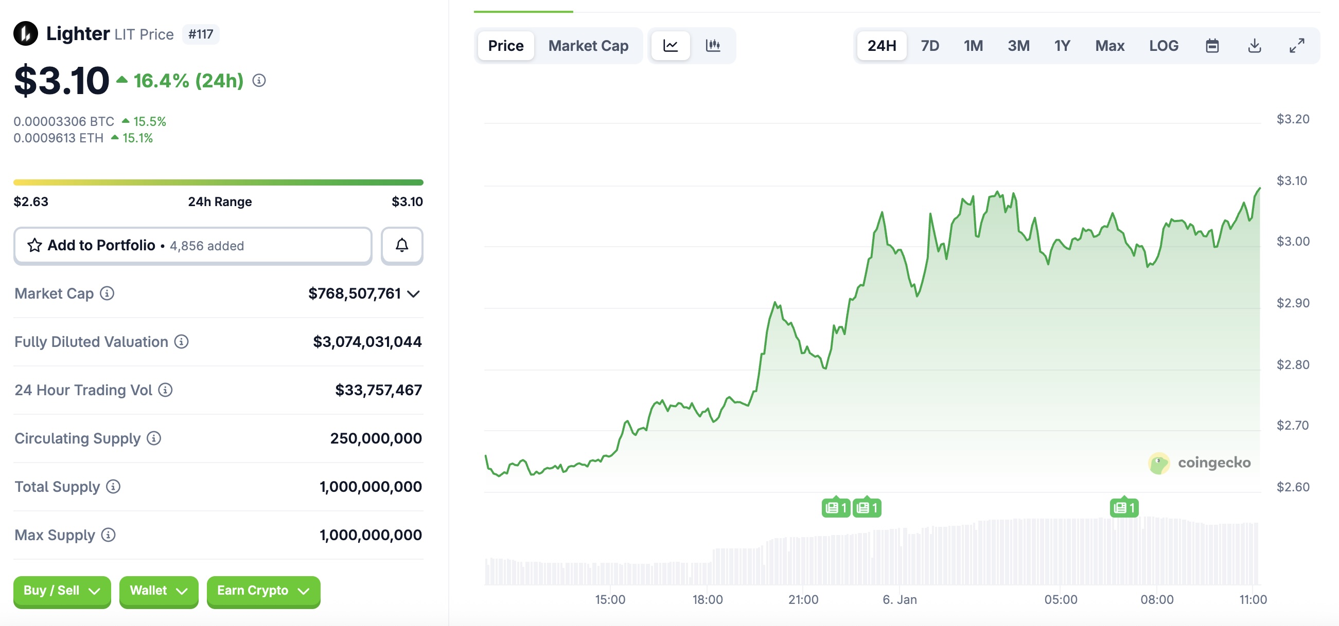 Theo dữ liệu giá, LIT tăng khoảng 16,4% trong 24 giờ, giao dịch quanh mức 3,1 USD. Đà tăng diễn ra trong bối cảnh cộng đồng crypto lan truyền suy đoán rằng Lighter đã bắt đầu mua lại LIT từ thị trường.