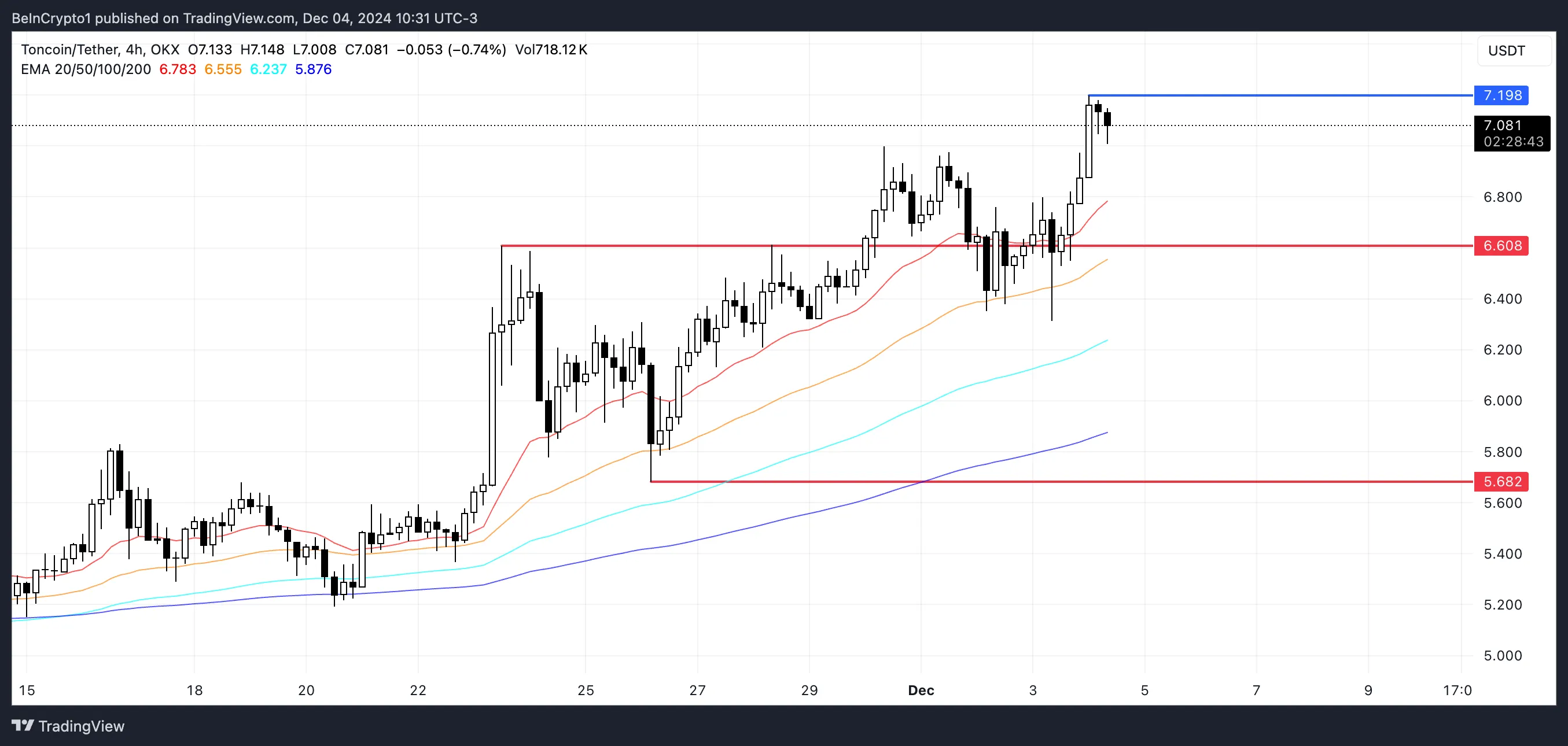 Nếu TON tiếp tục xu hướng tăng và phá vỡ ngưỡng kháng cự 7,19 USD, giá có thể hướng tới mức 8 USD vào tháng 12 – một mức giá chưa từng thấy kể từ tháng 6 năm 2024.